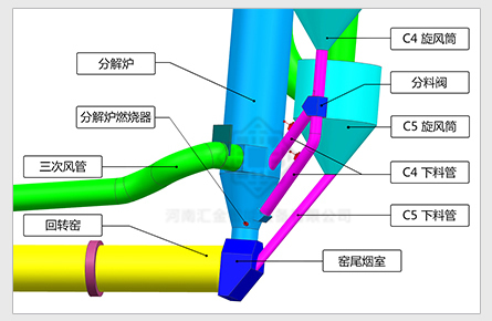 烟气脱硝窑尾烧成系统工艺改造是河南汇金智能装备有限公司研究开发的新一代水泥熟料窑尾煅烧技术,该技术是河南汇金智能装备有限公司研发团队经过近五年对新型干法回转窑脱硝技术的深入研究,总结多条新型干法水泥生产线实际窑尾烧成系统的技术优劣,采用计算机数值模拟仿真技术对新型干法回转窑及分解炉中煤粉的燃烧规律和分解规律进行仿真优化计算,采用分解炉高强还原燃烧控制技术,对现有新型干法回转窑窑尾烧成系统进行技术改造,可达到少用氨水、尿素、催化剂等条件下,降低氨水用量60%以上,NOx排放浓度大幅度降低达到环保要求。同时大幅度节约煤耗,提高熟料产量,大大降低了熟料的生产成本。